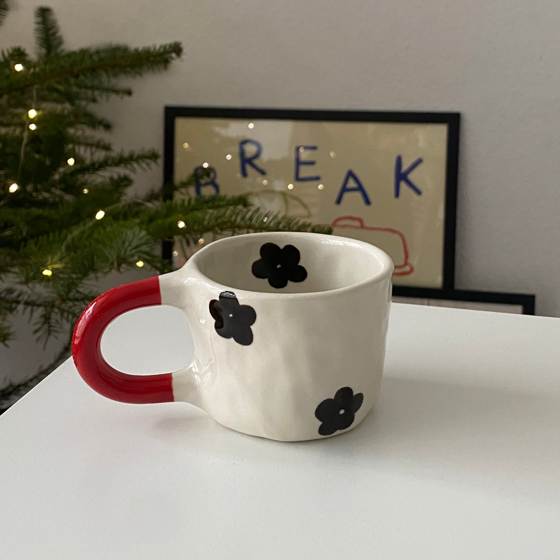 Każdy kubek lepię i maluję ręcznie w mojej pracowni w Toruniu. Poszczególne egzemplarze mogą nieznacznie różnić się od tych widocznych na zdjęciach – zarówno kształtem, rozmieszczeniem wzorów, jak i pojemnością. Właśnie dzięki temu każdy egzemplarz jest jedyny w swoim rodzaju i niepowtarzalny.