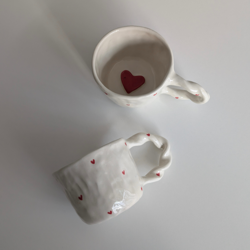 🌸 Jeśli jesteś osobą leworęczną i marzysz o tym, by podczas korzystania z kubka serducho nie było do góry nogami, napisz do mnie, z przyjemnością wykonam dla Ciebie taki egzemplarz.